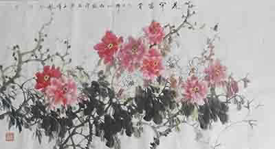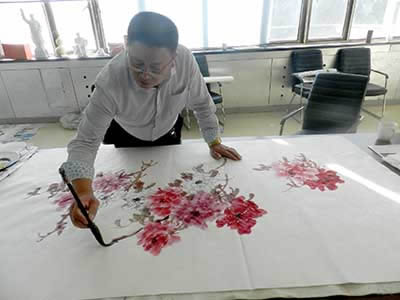 10月7日,当代著名画家王玉伟到访易游网页版,受到公司领导热情接待。图为王玉伟即兴创作《花开富贵》。(办公室 冯继宏)