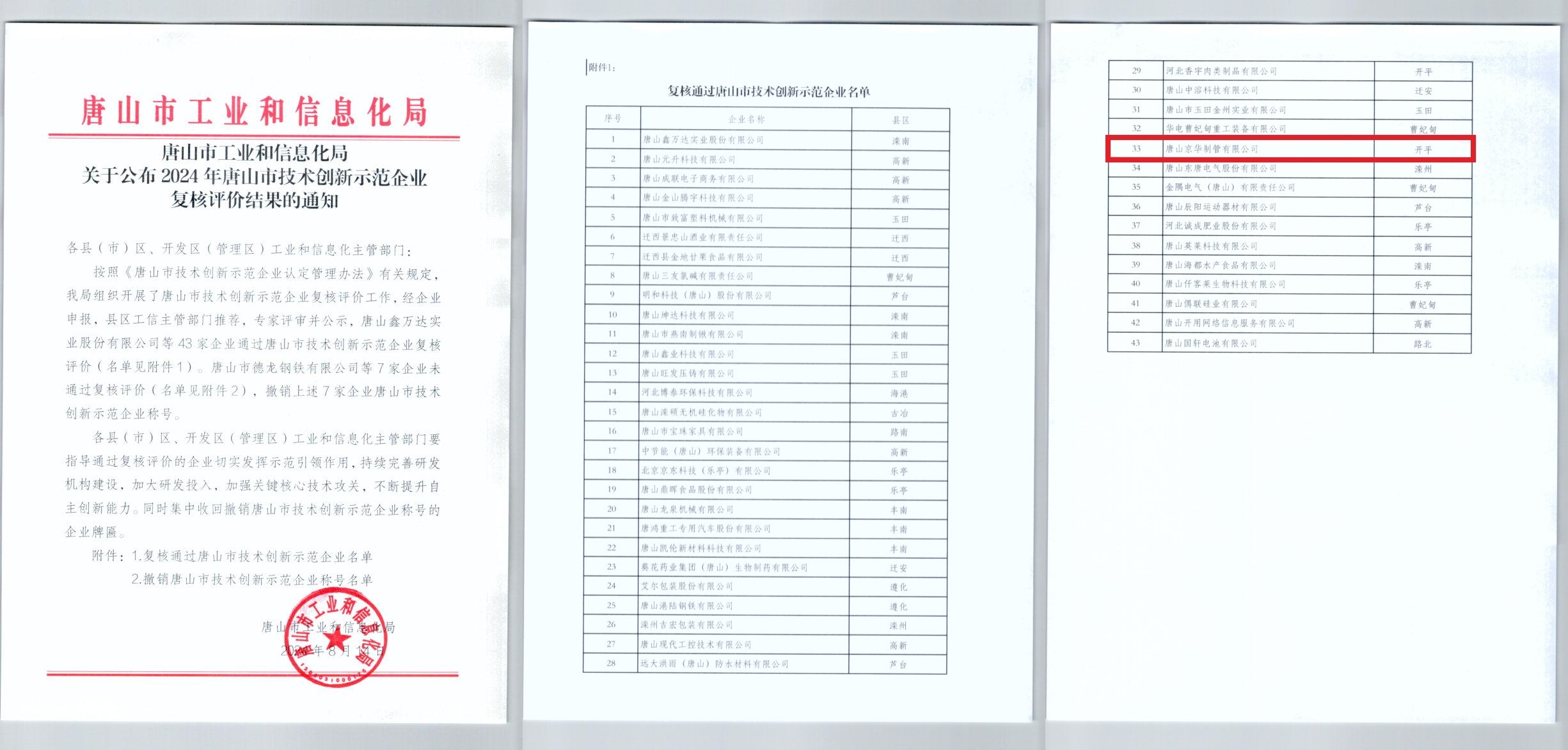 8月14日,唐山京华顺利通过唐山市技术创新示范企业复核评价。公司一直致力于以钢管研发、生产和销售,目前已成为省内最大的钢管生产企业之一,确立了“建成一个运转高效、经营良性、具有产品差异化、客户优质化,有自己特色、可持续发展的钢管企业”的发展定位。